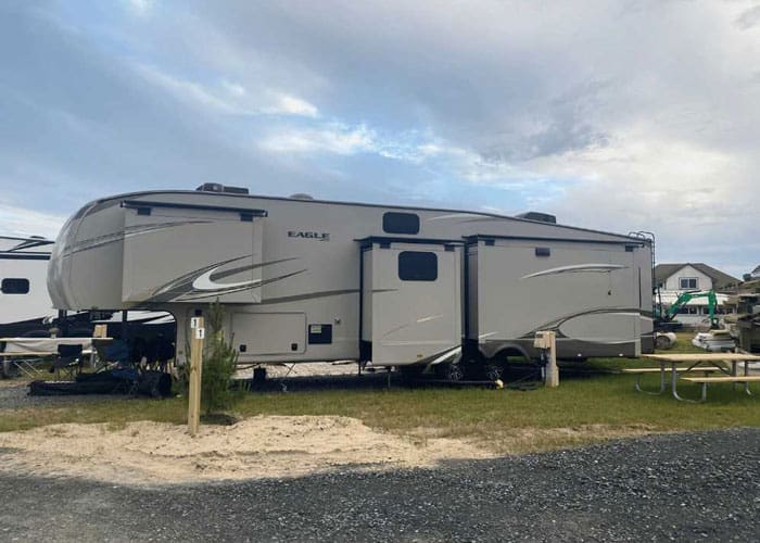 Our Home Away From Home category are the largest sites available at Avon Pier & RV Resort and can accommodate all rigs & sizes. These include sites 1-7, 24, 25, & 26.